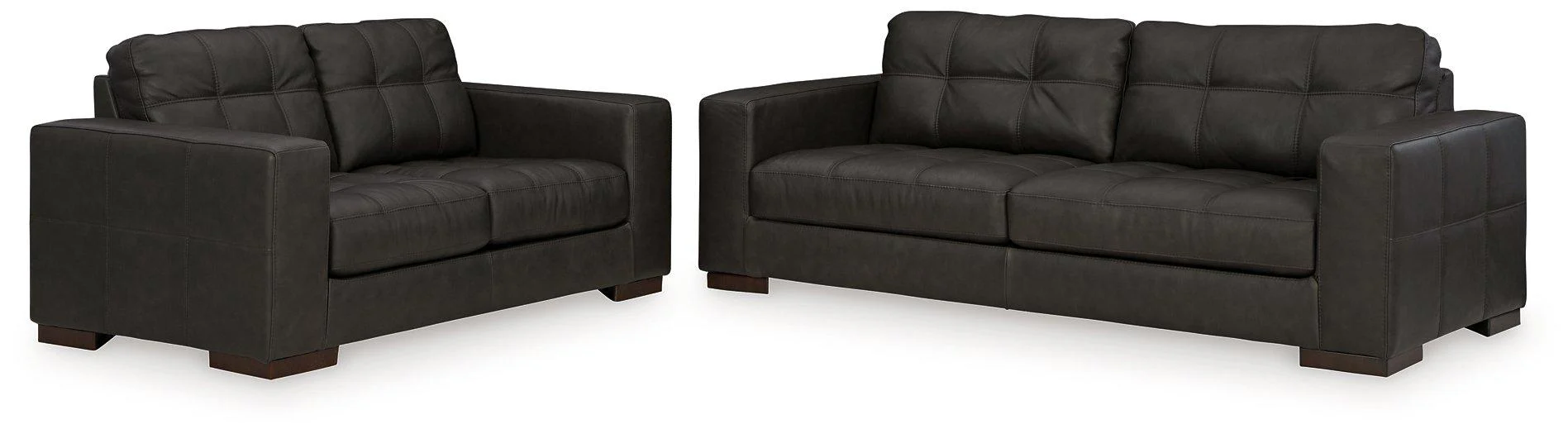 Casual and contemporary, this seating package suits those with a keen eye for everyday luxury. Its expertly matched leather and faux leather upholstery is filled with depth and dimension, incorporating an inviting sense of masculine character. With tufting details and linear silhouettes solidifying the set's chill vibe, all thatās left to do is sit back and relax.