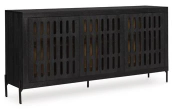 This accent cabinet showcases high-end style with a captivating design. A cleverly placed cutout offers a sneak peek inside, making it a versatile choice for use as a buffet, console or media cabinet. Contemporary and casual, this piece epitomizes laid-back luxury.
