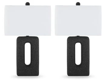 These sculptural table lamps are an enlightening choice for those with an eye for clean-lined, modern design. The textured cutout base and sleek rectangular shade elevate them to an art form. Place these accent lamps on a console table for a touch of chic refinement.